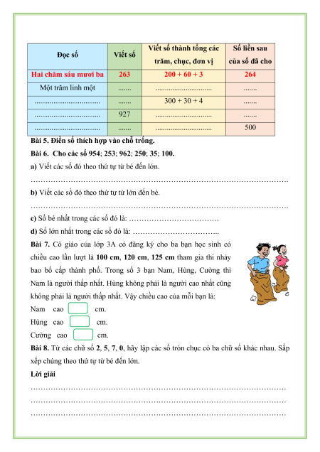 Bài 6. Cho các số 954; 253; 962; 250; 35; 100.