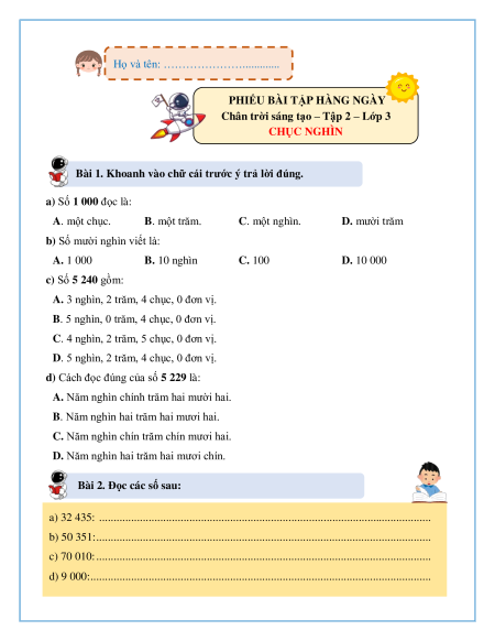 Bài tập hàng ngày Toán lớp 3 Chân trời sáng tạo Học kì 2
