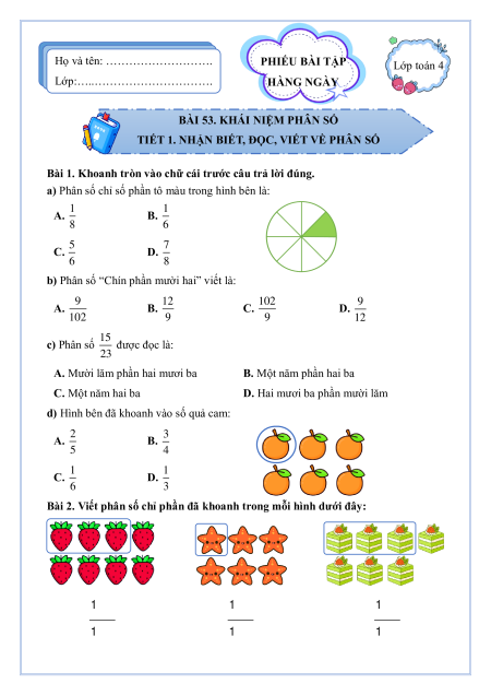 BÀI 53. KHÁI NIỆM PHÂN SỐ