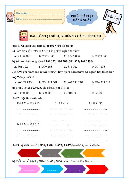 Bài tập hàng ngày Toán lớp 5 (cả năm) Chân trời sáng tạo