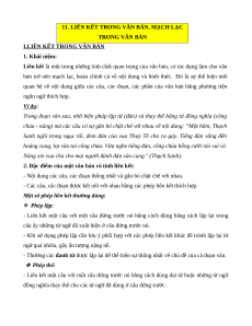 11. LIÊN KẾT TRONG VĂN BẢN, MẠCH LẠC TRONG VĂN BẢN I. LIÊN KẾT TRONG VĂN BẢN 1. Khái niệm: