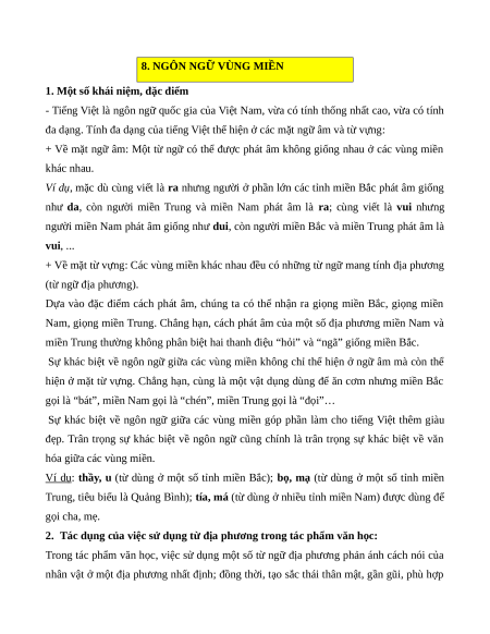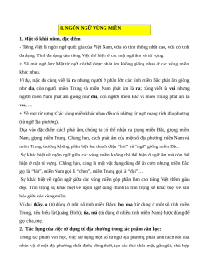+ Về mặt từ vựng: Các vùng miền khác nhau đều có những từ ngữ mang tính địa phương (từ ngữ địa phương).