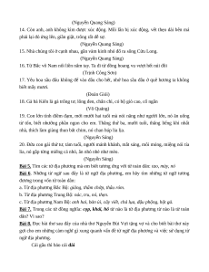 7. Trên mấy nhà sàn buồn tênh, ba bốn bà ké nhìn ra, nhớ những ngày vui của các đồng chí đóng tại nhà mình. (Nguyễn Huy Tưởng)