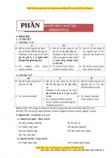 PHẦN CHUYÊN ĐỀ 1: NGỮ ÂM (PHONETICS) 1: CÁC A. P HÁT ÂM I. LÍ THUYẾT