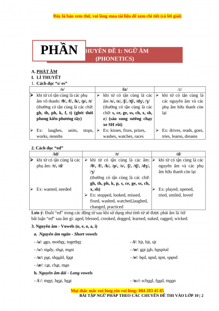 BÀI TẬP NGỮ PHÁP THEO CÁC CHUYÊN ĐỀ THI VÀO LỚP 10 | 2