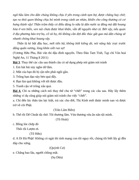 4. BÀI TẬP THỰC HÀNH VỀ “NÓI GIẢM, NÓI TRÁNH”