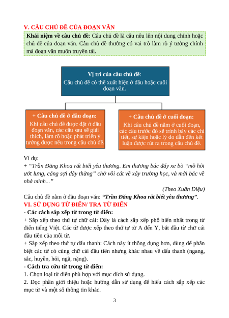 V. CÂU CHỦ ĐỀ CỦA ĐOẠN VĂN