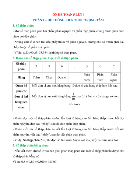PHẦN 1 – HỆ THỐNG KIẾN THỨC TRỌNG TÂM 1. Số thập phân