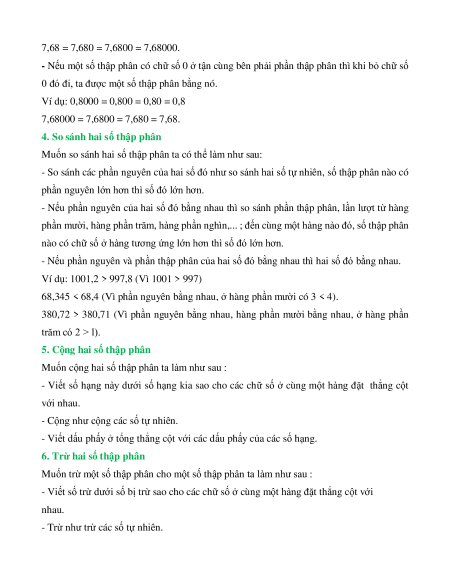 - Nếu một số thập phân có chữ số 0 ở tận cùng bên phải phần thập phân thì khi bỏ chữ số