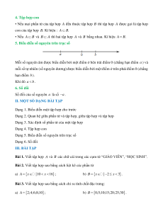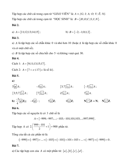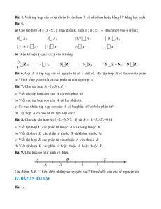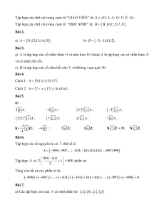 Cách 2: A = 7 x 17 | x là số lẻ}. Bài 5. a) 5 A; 5 − A ; 3; 7 A ; − 5 A ; 3;5; 7 = A ; 7 A ; A; 7 A . 3 − b) ; Z;; 4 − ; 5 ; Z ; Z N Z = ; N N . Z 4 Bài 6.