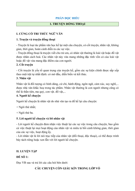 bày tách riêng hoặc xen lẫn với lời người kề chuyện. II. LUYỆN TẬP ĐỀ SỐ 1: