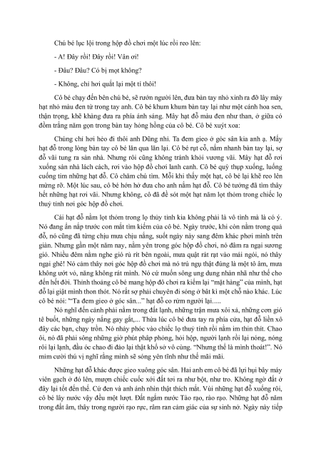 tê buốt, những ngày nắng gay gắt,... Thừa lúc cô bé đưa tay ra phía cửa, hạt đỗ liền xô
