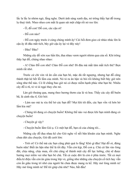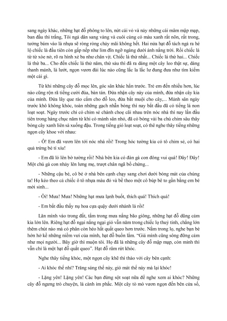 hớn hở kề những niềm vưi của mình, hạt đỗ buồn lắm. “Giá mình cũng sông đững cảm