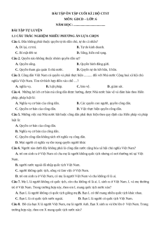 Câu 24. Công dân nước Cộng hòa xã hội chủ nghĩa Việt Nam là người có quốc tịch A. nhiều nước. B. nước ngoài. C. quốc tế. D. Việt Nam.
