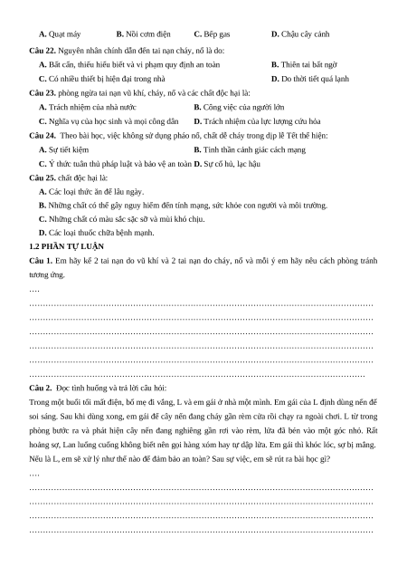 Câu 1. Em hãy kể 2 tai nạn do vũ khí và 2 tai nạn do cháy, nổ và mỗi ý em hãy nêu cách phòng tránh tương ứng. ….