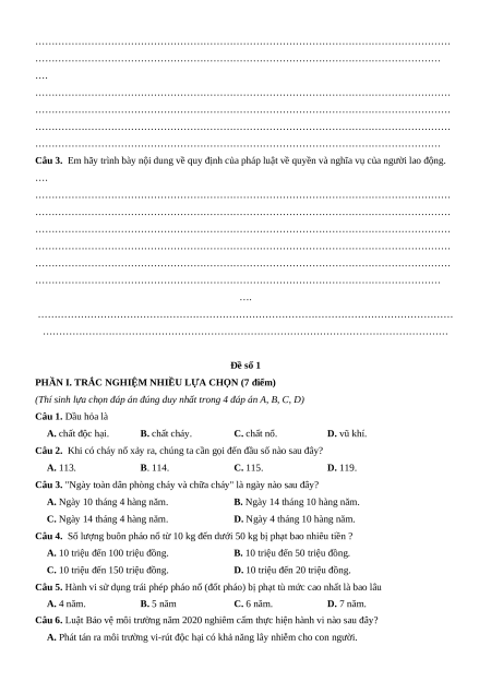 Câu 23. phòng ngừa tai nạn vũ khí, cháy, nổ và các chất độc hại là: