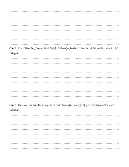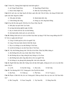 Câu 7. Năm 931, Dương Đình Nghệ dấy binh khởi nghĩa ở A. núi Tùng (Thanh Hóa). B. làng Ràng (Thanh Hóa). C. Hoan Châu (Nghệ An).