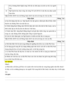 Câu 3. Điền chữ Đ vào cột Đúng, hoặc chứ S vào cột sai trong các câu sau đây Nhận định Đúng Sai