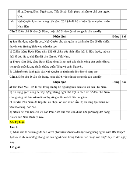 b) Hãy ra chỉ ra những phong tục của người Việt trong thời kì Bắc thuộc vẫn được duy trì đến ngày nay. Lời giải: