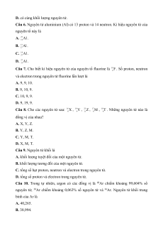 Câu 6. Nguyên tử aluminium (Al) có 13 proton và 14 neutron. Kí hiệu nguyên tử của nguyên tố này là A. 27Al. 14 B. 13Al. 27 C. 14Al. 27 D. 27Al. 13