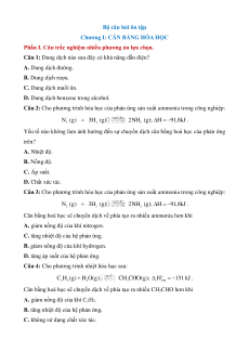 chung của hệ phản ứng. Những biện pháp nào làm cân bằng trên chuyển dịch theo chiều thuận? A. (1), (2), (4), (5). B. (2), (3), (5). C. (2), (3), (4), (6). D. (1), (2), (4).