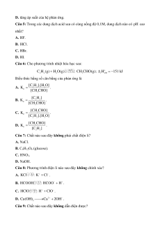 Câu 5: Trong các dung dịch acid sau có cùng nồng độ 0,1M, dung dịch nào có pH cao nhất? A. HF. B. HCl . C. HBr. D. HI.
