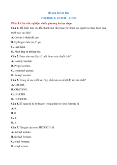 Câu 21. Xà phòng hóa ester nào sau đây thu được sản phẩm có khả năng tham gia phản ứng tráng bạc? A. Vinyl acetate. B. Allyl propionate. C. Ethyl acrylate. D. Methyl methacrylate.