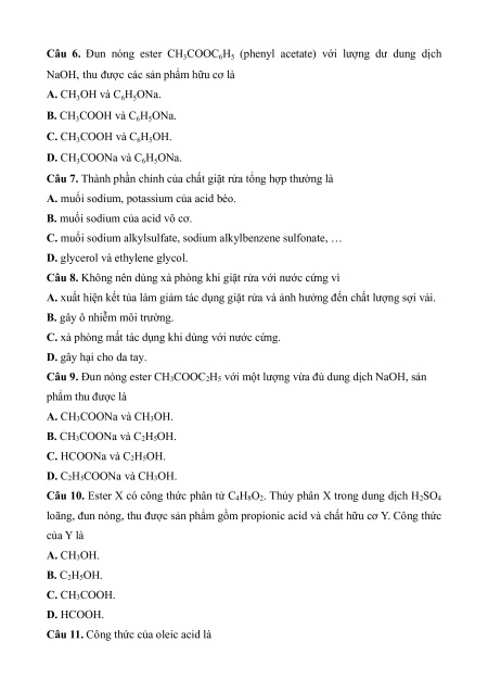Câu 6. Đun nóng ester CH3COOC6H5 (phenyl acetate) với lượng dư dung dịch