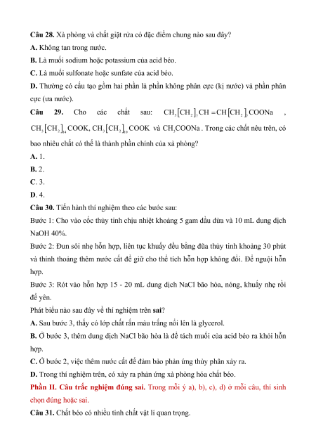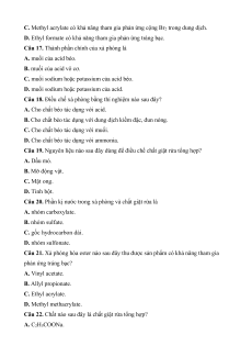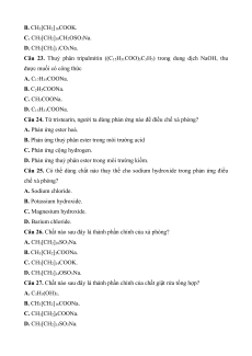 Câu 20. Phần kị nước trong xà phòng và chất giặt rửa là A. nhóm carboxylate. B. nhóm sulfate.