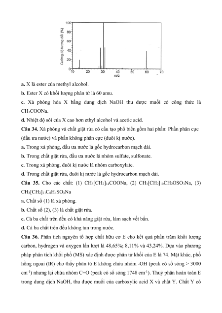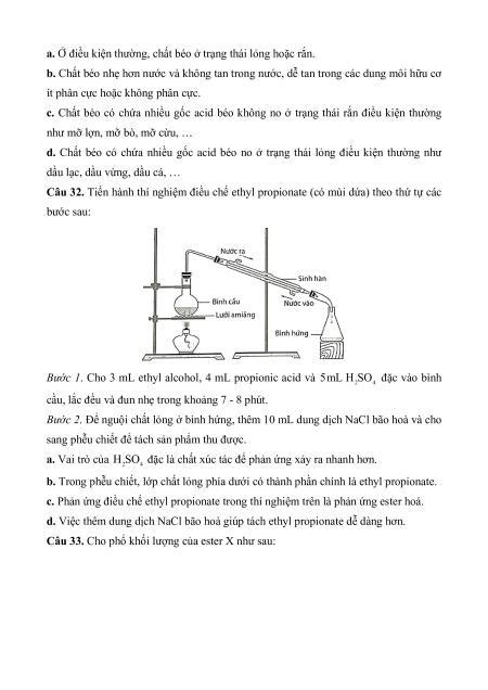 Câu 10. Ester X có công thức phân tử C4H8O2. Thủy phân X trong dung dịch H2SO4