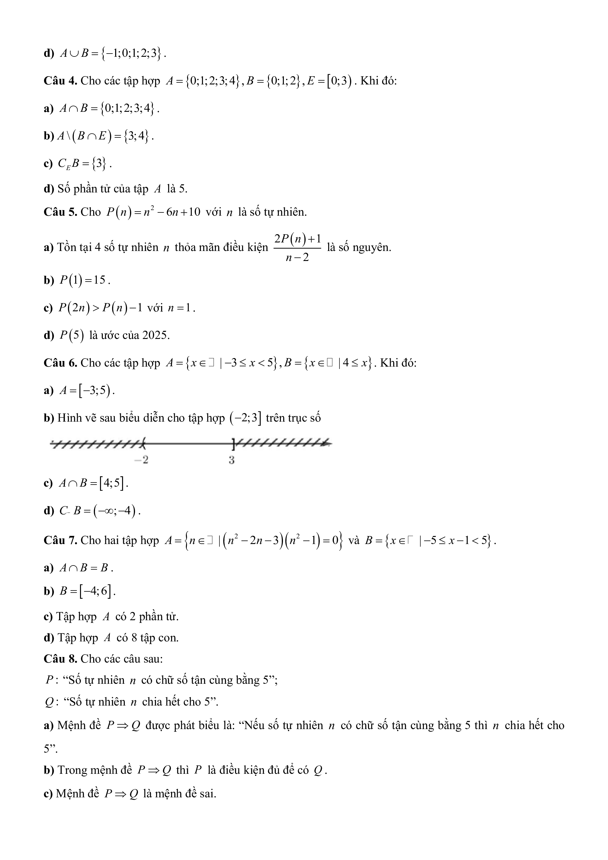 Chương 1. Mệnh đề toán học. Tập hợp A. Trắc nghiệm
