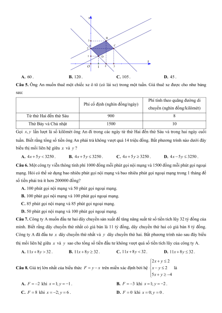x y) =15x + 30y . y B 3 A C 2 1 D x O 2 3 1 A. 60 . B. 120 . C. 105 . D. 45 .