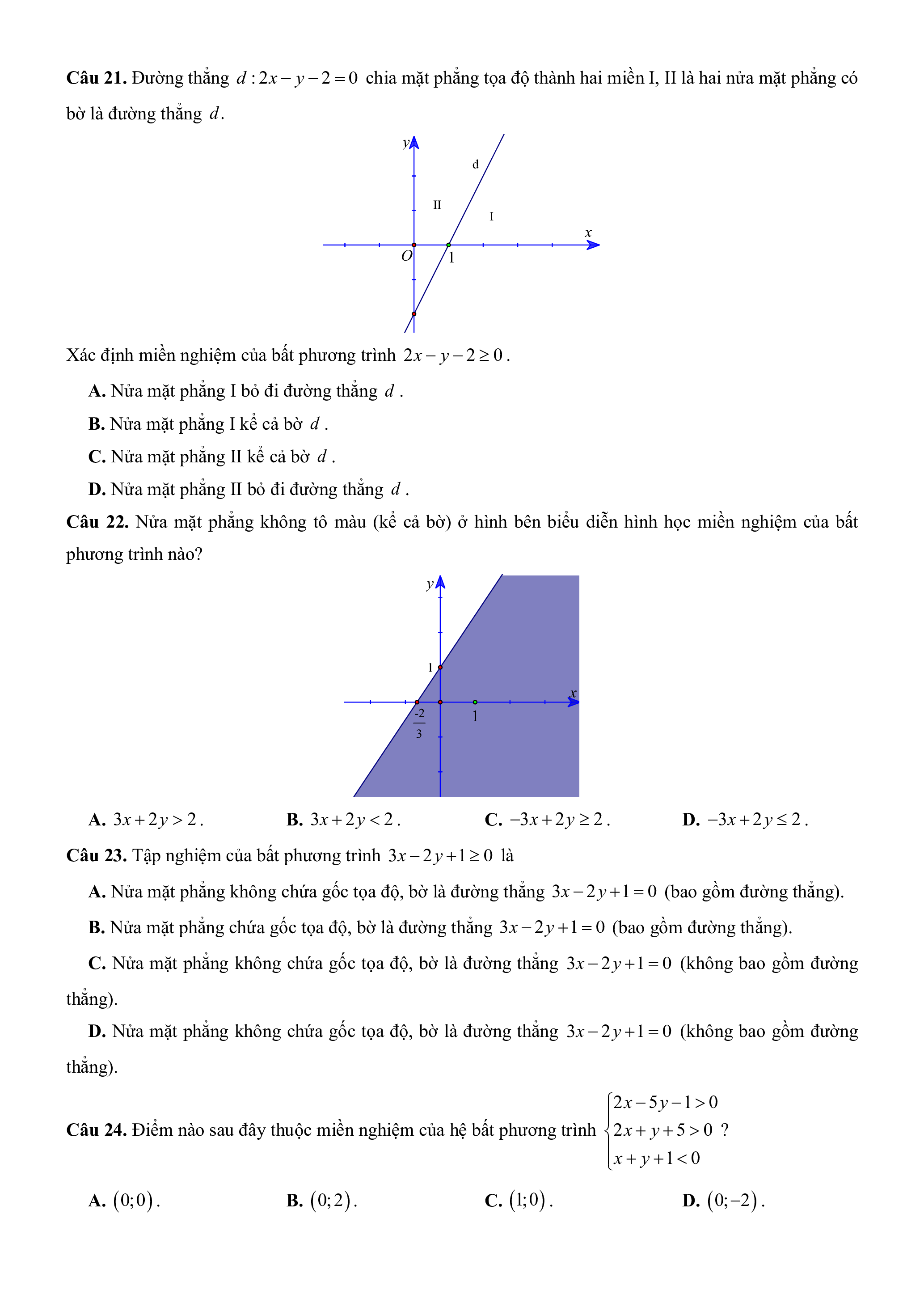 Chương 2. Bất phương trình và hệ bất phương trình bậc nhất hai ẩn A. Trắc nghiệm