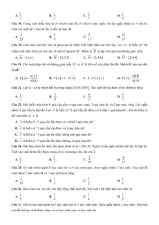 Câu 25. Từ một nhóm gồm 6 học sinh nữ và 4 học sinh nam, chọn ngẫu nhiên 3 học sinh. Xác suất để