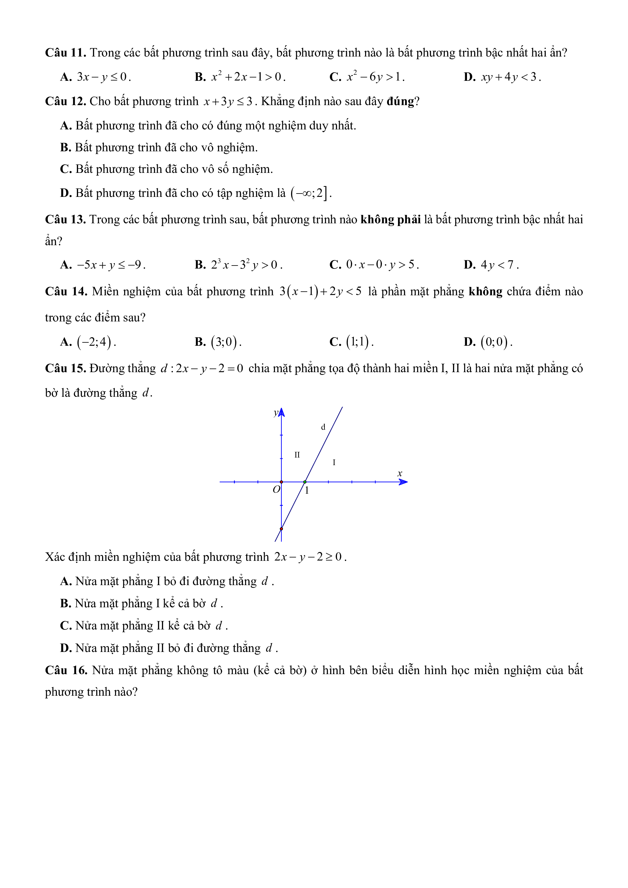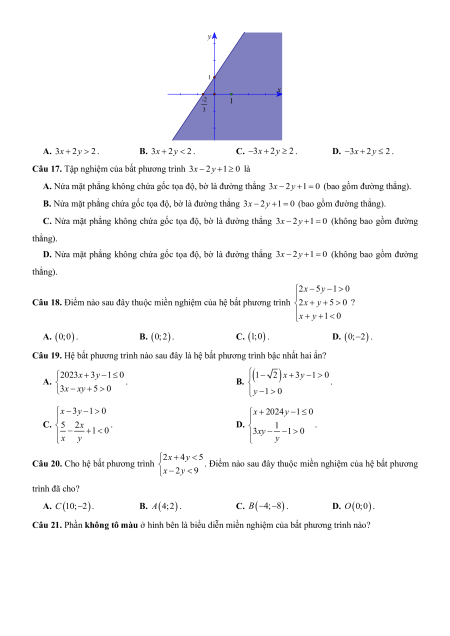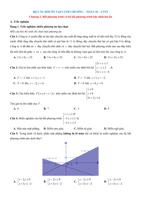 Chương 2. Bất phương trình và hệ bất phương trình bậc nhất hai ẩn A. Trắc nghiệm