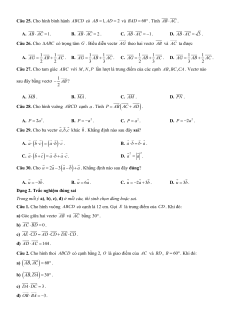 Câu 25. Cho hình bình hành ABCD có AB = 1, AD = 2 và