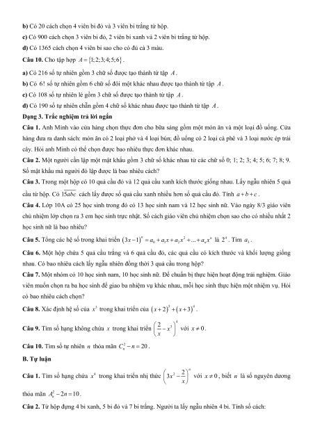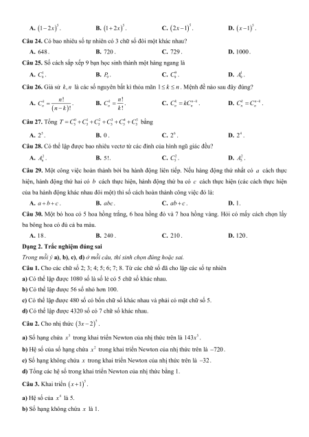 Chương 8. Đại số tổ hợp A. Trắc nghiệm