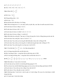 Câu 26. Giả sử k,n là các số nguyên bất kì thỏa mãn 1 k n . Mệnh đề nào sau đây đúng? A. k n! C n . B. k ! C . C. k n k C kC . D. k n k C C . n n k! n k! n n n n Câu 27. Tổng 0 1 2 3 4 5