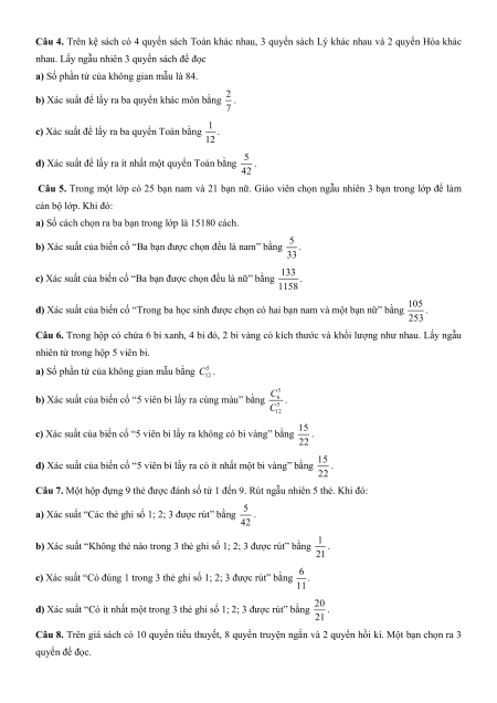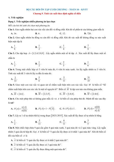 Chương 9. Tính xác suất theo định nghĩa cổ điển A. Trắc nghiệm