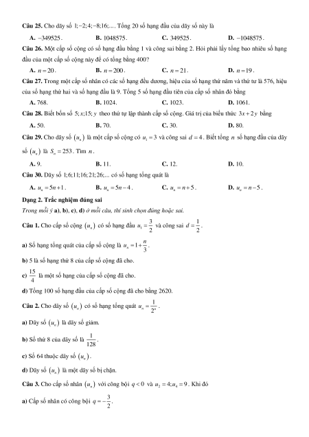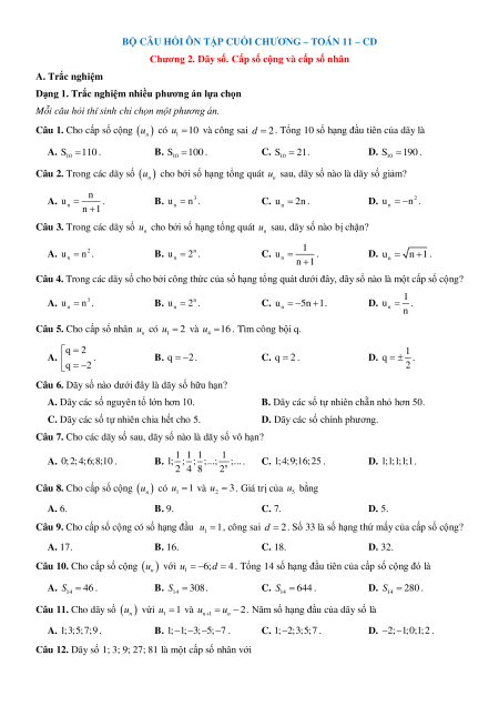 Chương 2. Dãy số. Cấp số cộng và cấp số nhân A. Trắc nghiệm