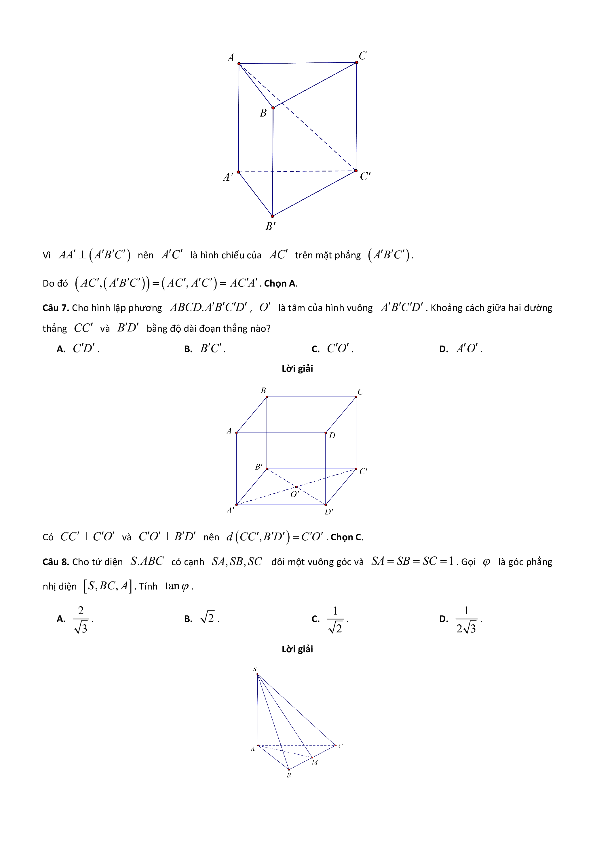 Câu 7. Cho hình lập phương ABC . D A B C D