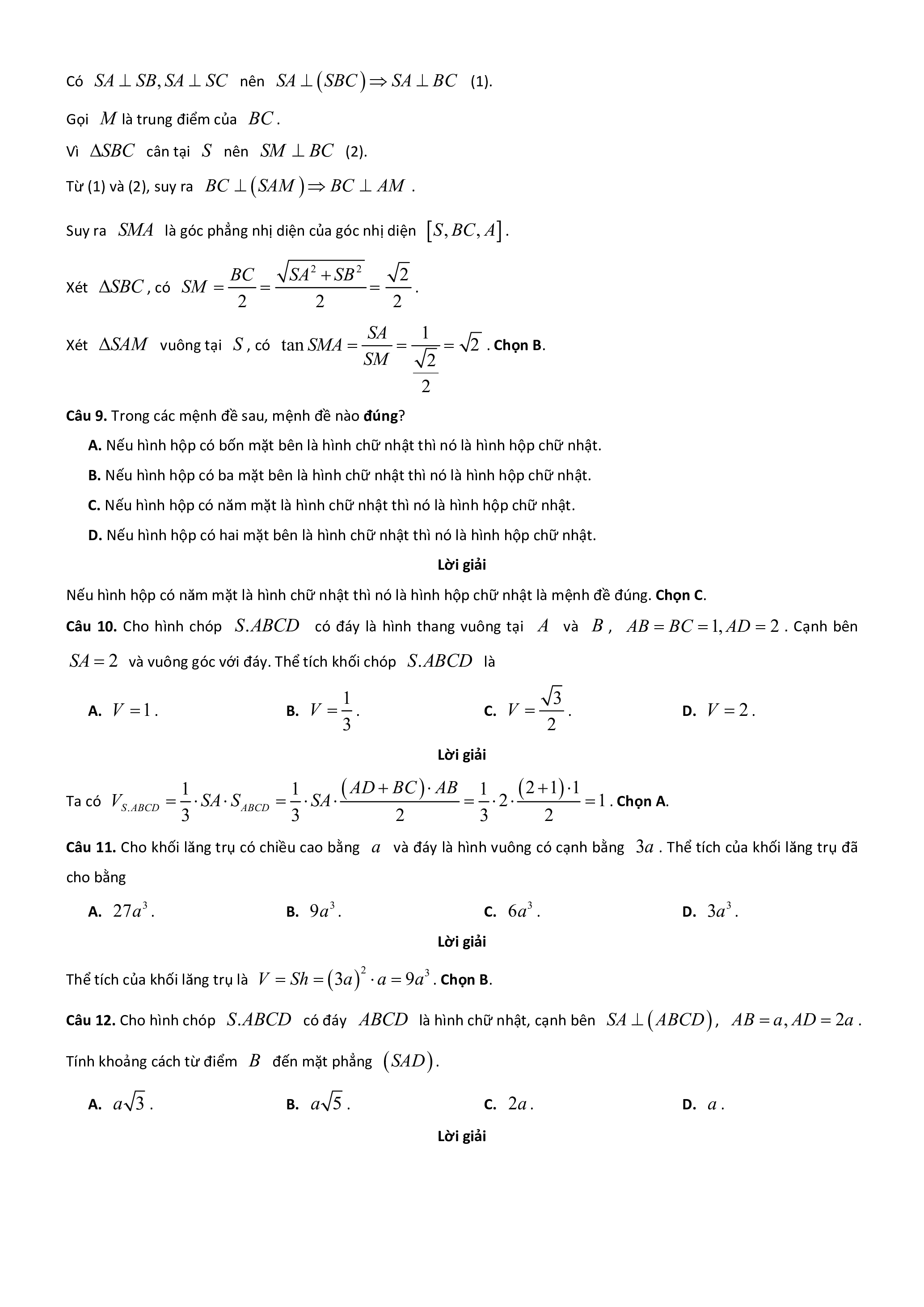 AD BC AB 1 2 11 Ta có V SA S SA S ABCD ABCD 2 1 . . Chọn A. 3 3 2 3 2
