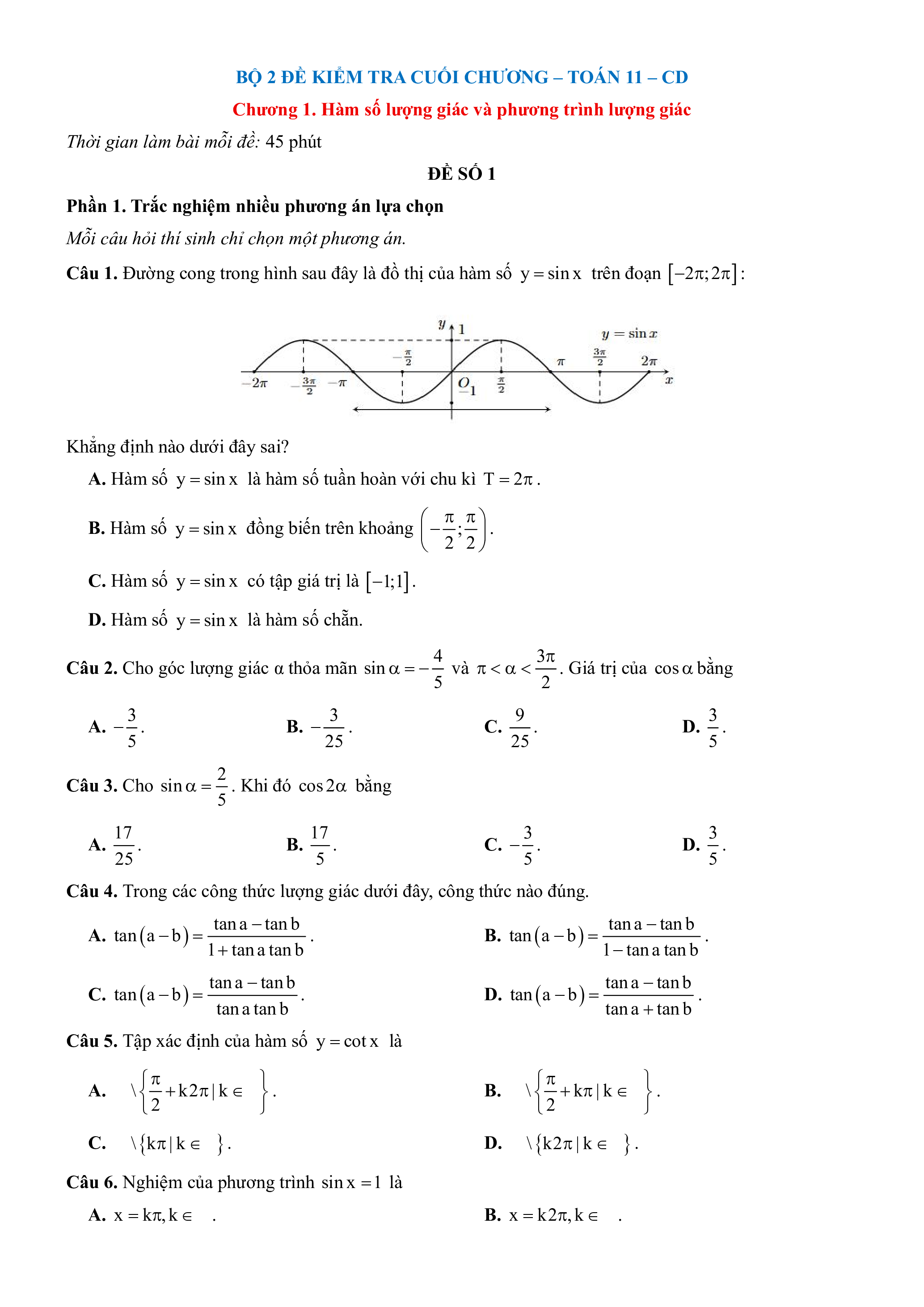 Chương 1. Hàm số lượng giác và phương trình lượng giác