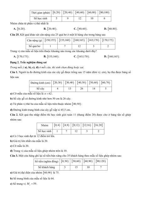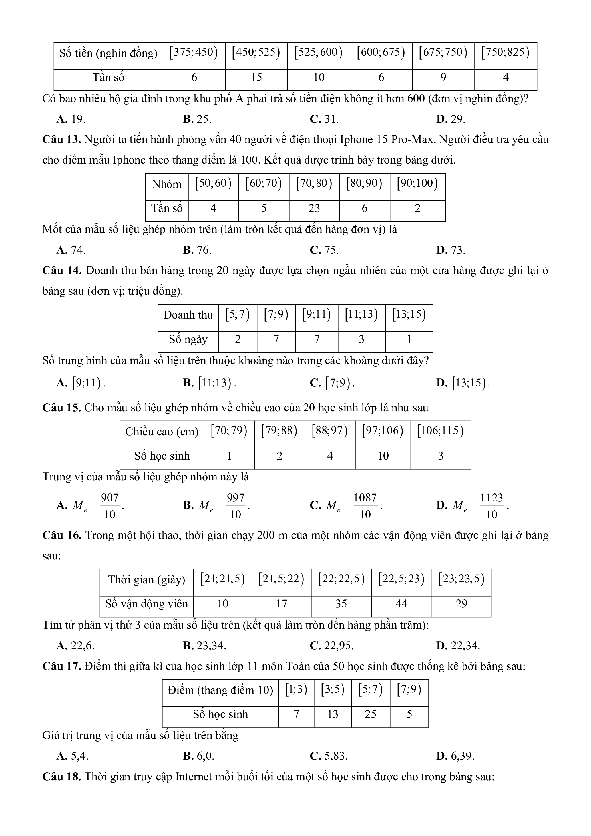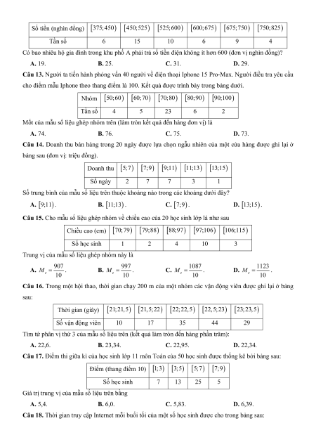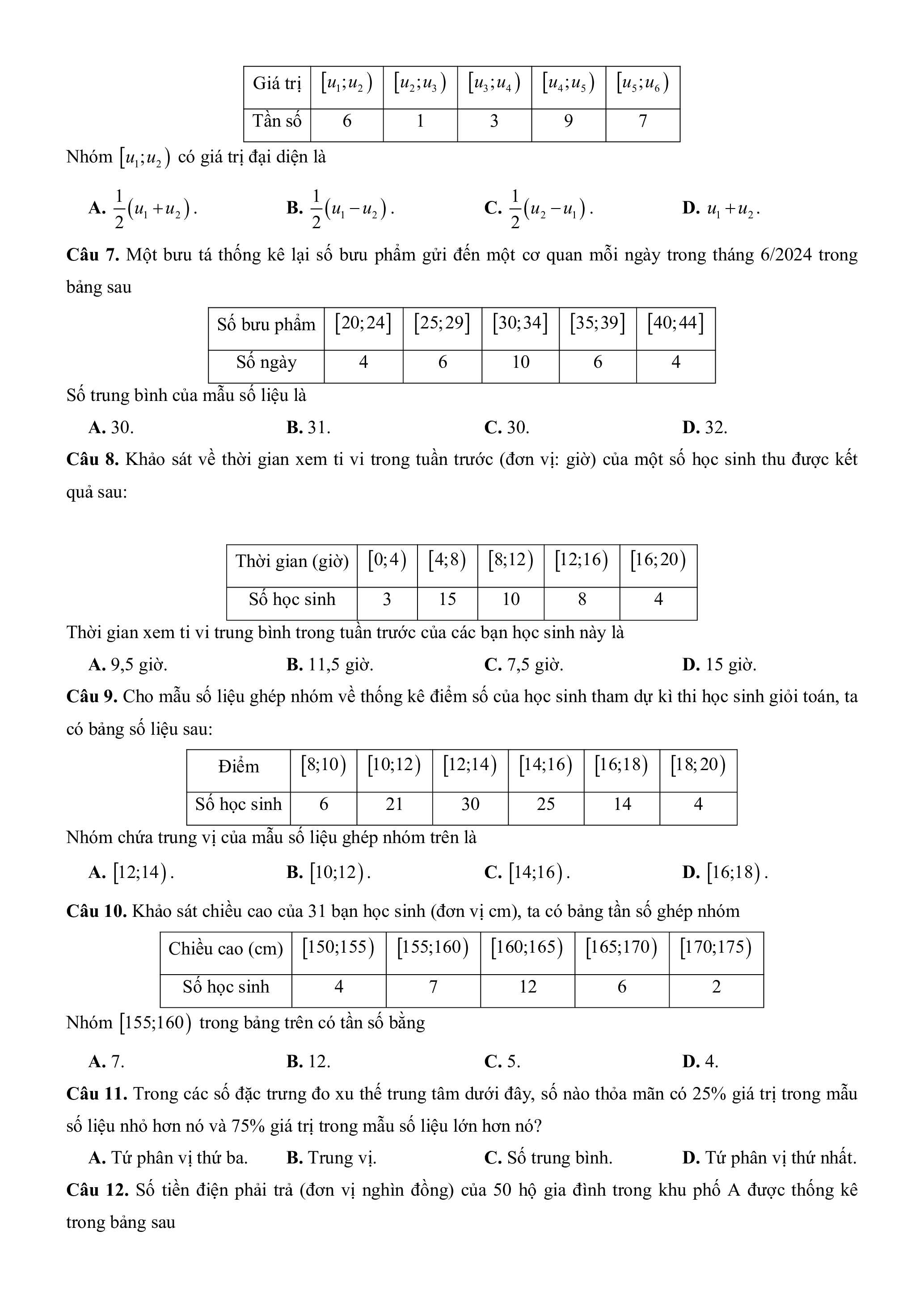 Chương 5. Các số đặc trưng đo xu thế trung tâm của mẫu số liệu ghép nhóm A. Trắc nghiệm