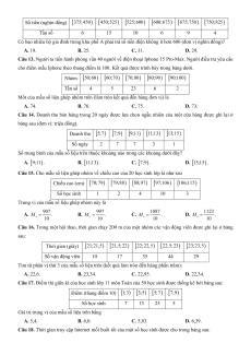 Câu 6. Cho mẫu số liệu như bảng bên dưới