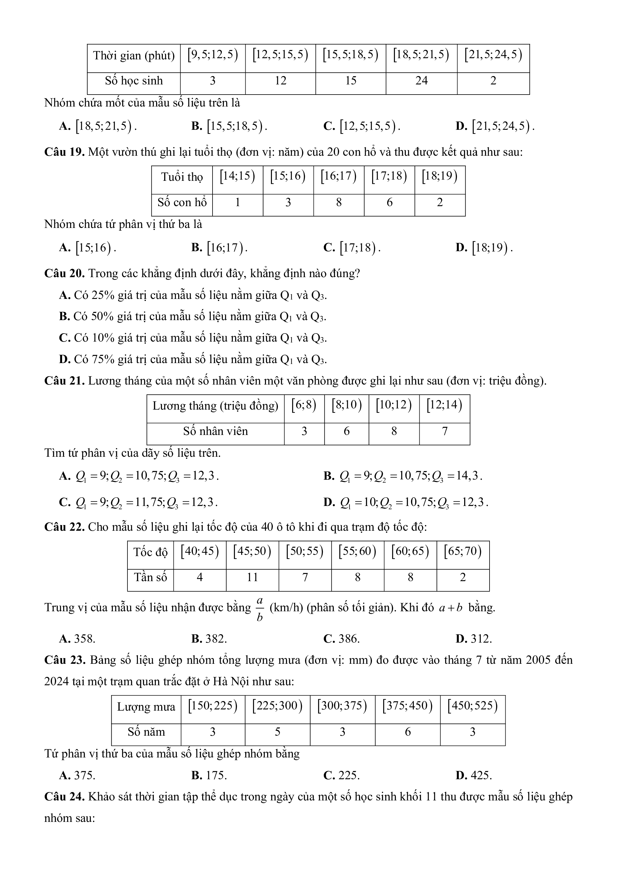 Câu 11. Trong các số đặc trưng đo xu thế trung tâm dưới đây, số nào thỏa mãn có 25% giá trị trong mẫu