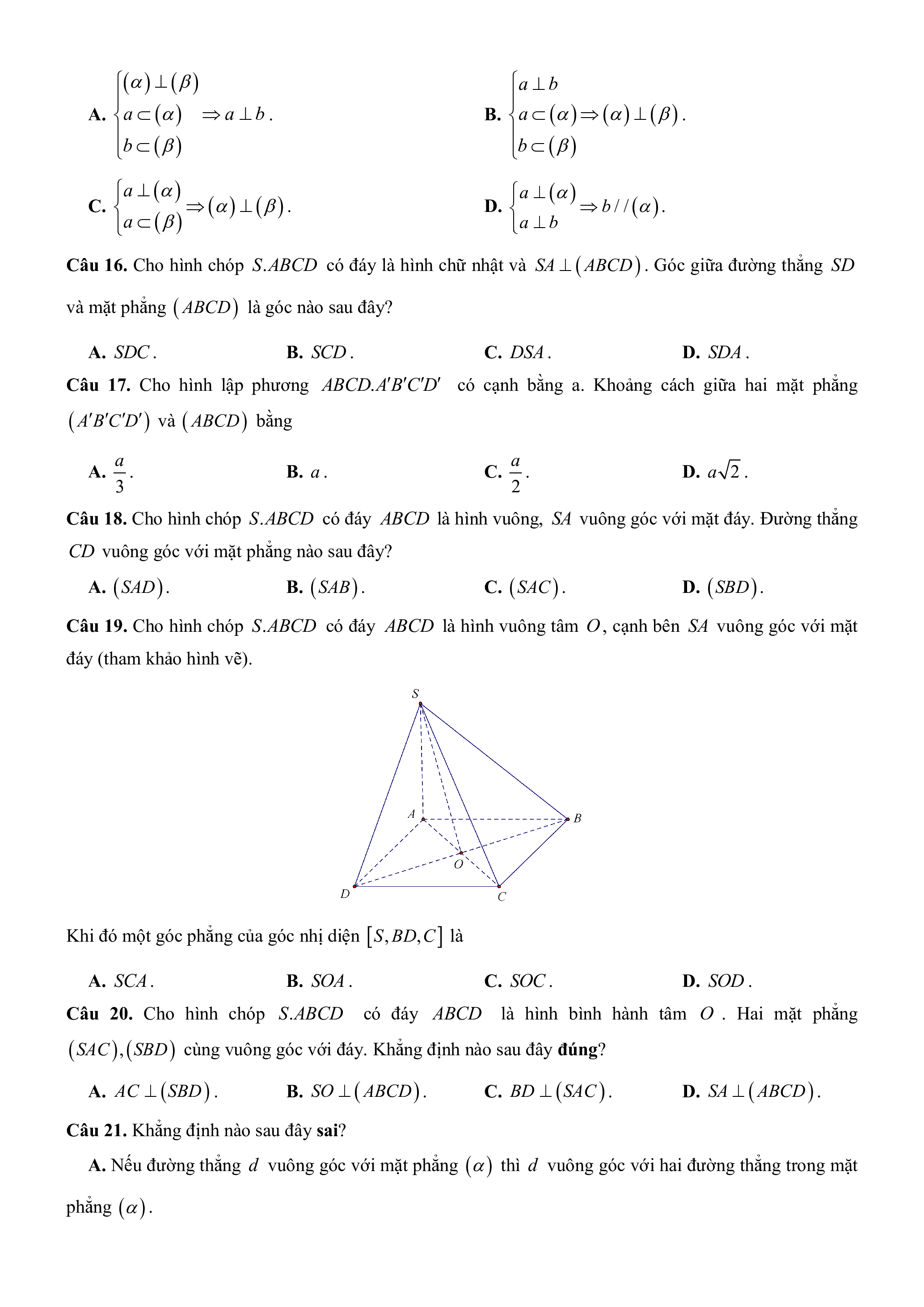Câu 18. Cho hình chóp S.ABCD có đáy ABCD là hình vuông, SA vuông góc với mặt đáy. Đường thẳng