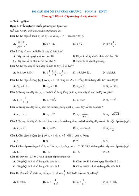Chương 2. Dãy số. Cấp số cộng và cấp số nhân A. Trắc nghiệm