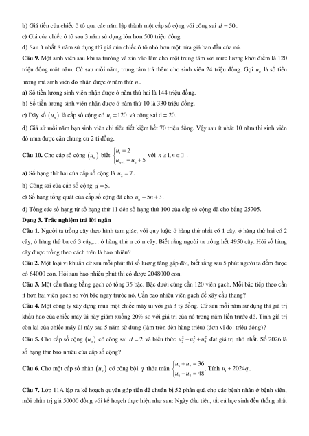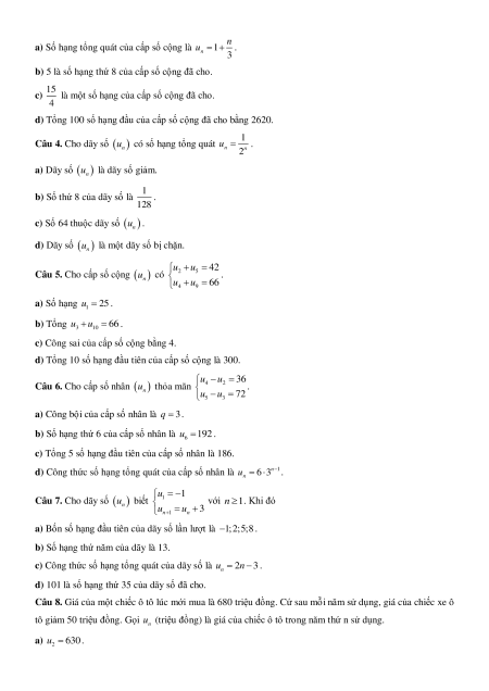 d) Công thức số hạng tổng quát của cấp số nhân là 1