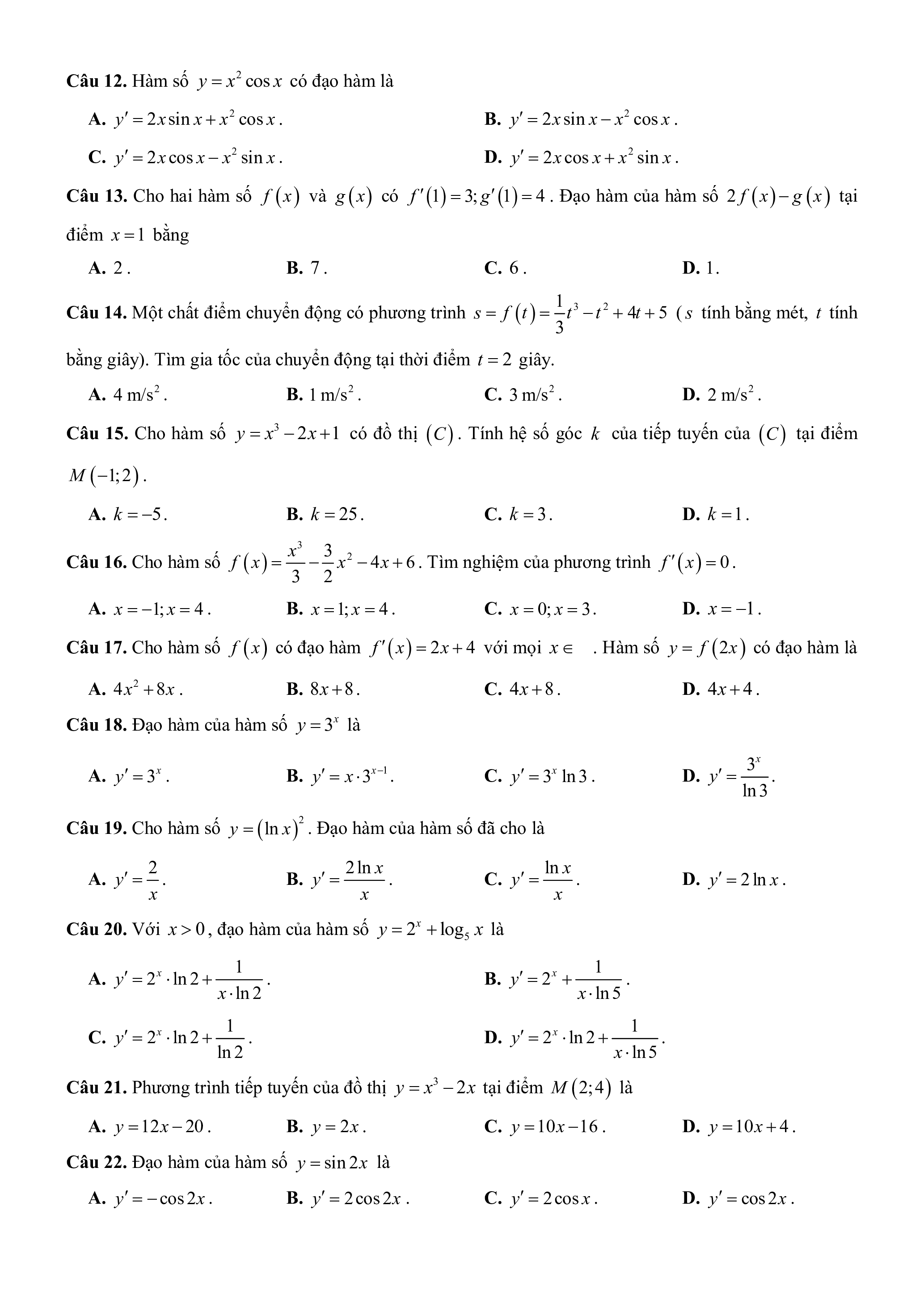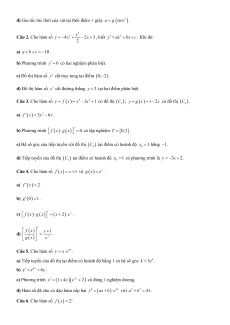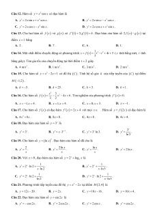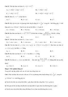 bằng giây). Tìm gia tốc của chuyển động tại thời điểm t 2 giây. A. 2 4 m/s . B. 2 1 m/s . C. 2 3 m/s . D. 2 2 m/s . Câu 15. Cho hàm số 3